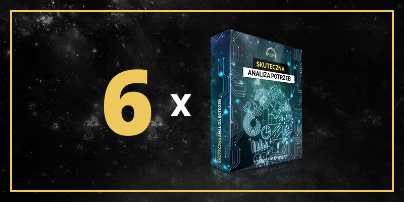 Skuteczna Analiza Potrzeb - dowiesz się, jak wykorzystać ten etap rozmowy, aby wyeliminować obiekcje, zanim się pojawią. Będziesz potrafił dojść do prawdziwej potrzeby klienta, która często nie jest oczywista i Twoje rozmowy będą tak prowadzone, że to klient sam będzie chciał od Ciebie kupić. Dostaniesz konkretny schemat, jak i jakiego typu pytania zadawać oraz jak budować logikę zadawanych pytań.